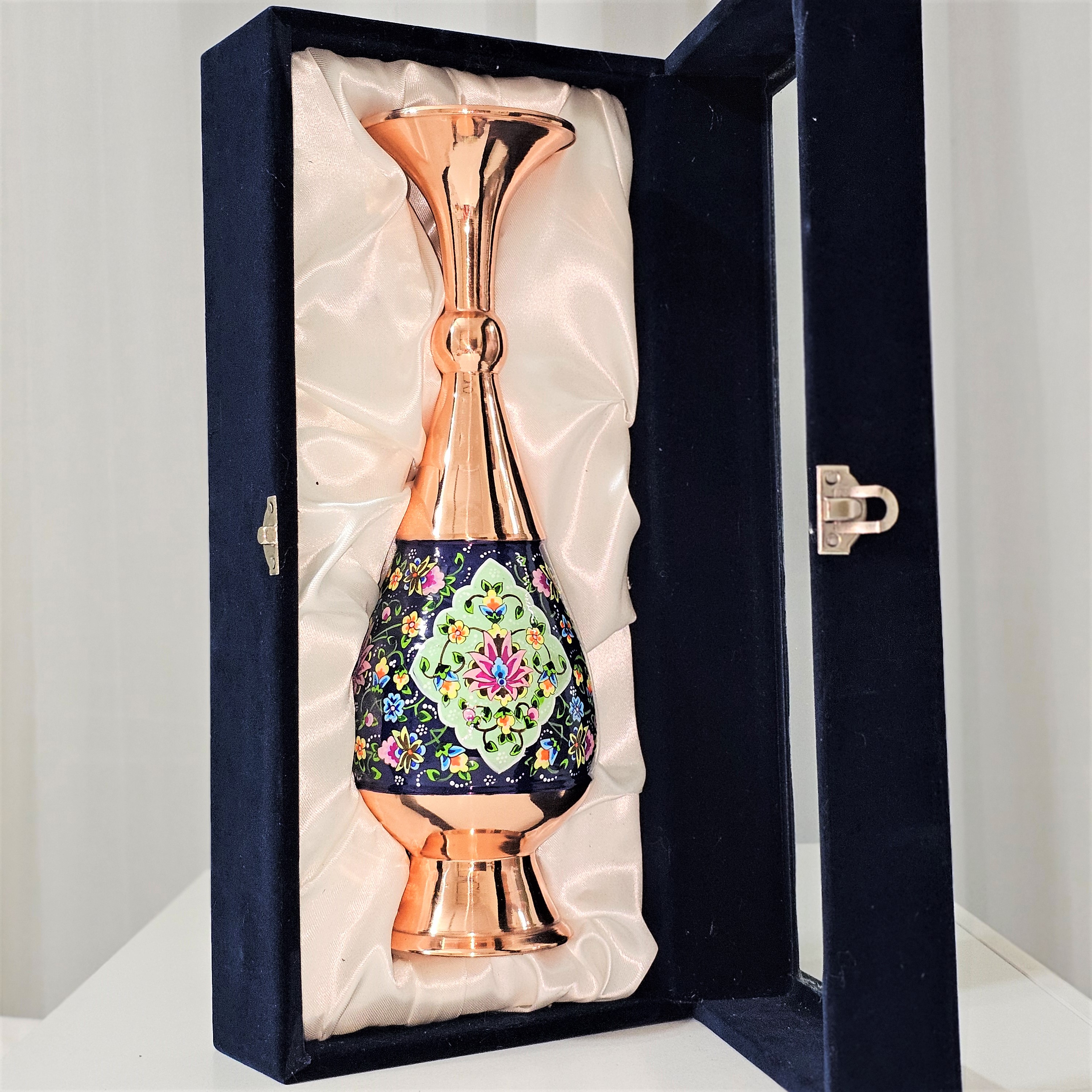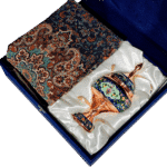 ست هديه مس و ترمه مجموعه اى منحصربه فرد از هنرهاى سنتى ايران ست كه با تركيبى زيبا و هماهنگ، گزينه اى ايده آل براى هديه در مناسبتهاى مختلف به شمار میرود. اين ست شامل يک شكلاتﺧورى با طراحى ظريف و كيفيت بالا و يک رومیزی ترمه به ابعاد 95×95 سانتیمتر میباشد،